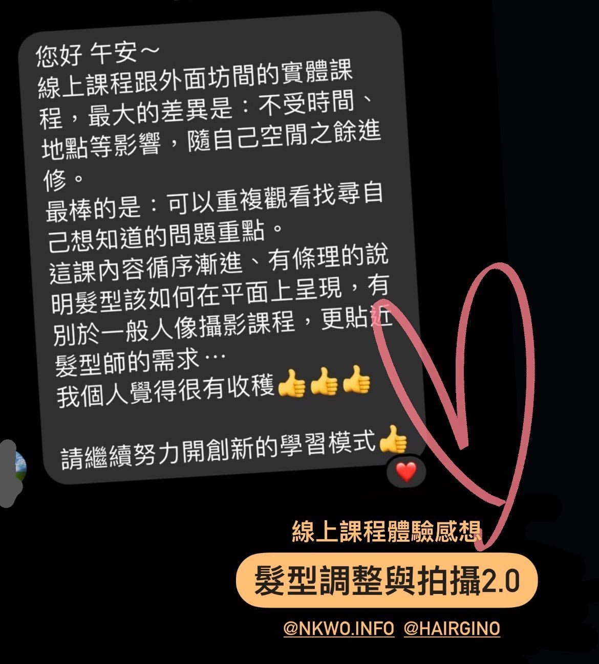 - • 去他牌髮廊上課,可能因此被吸引